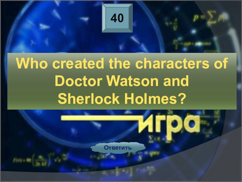 40ОтветитьWho created the characters of Doctor Watson and Sherlock Holmes?