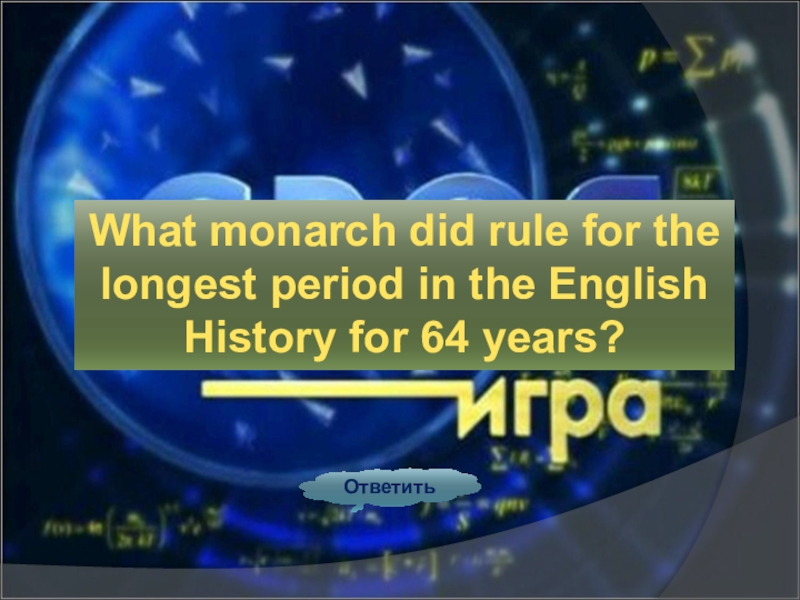 ОтветитьWhat monarch did rule for thelongest period in the English History for 64 years?