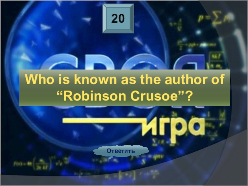20ОтветитьWho is known as the author of “Robinson Crusoe”?