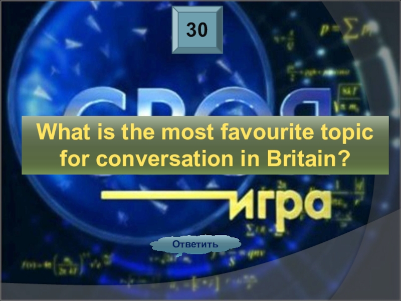 30ОтветитьWhat is the most favourite topic for conversation in Britain?