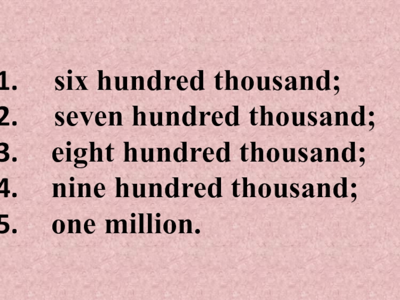 Слайд 6six hundred thousand;
