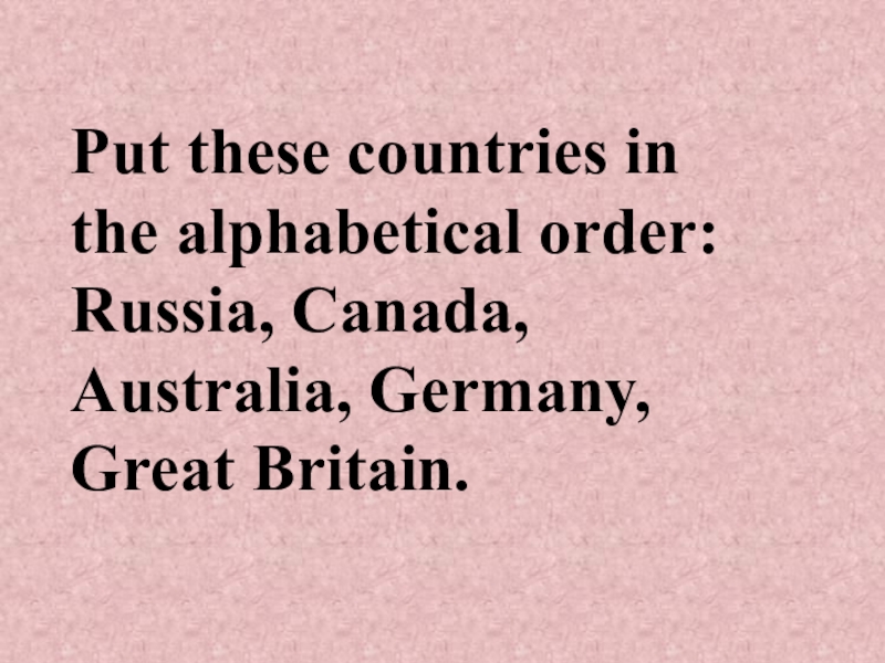 Слайд 2Put these countries in the alphabetical order: Russia, Canada,