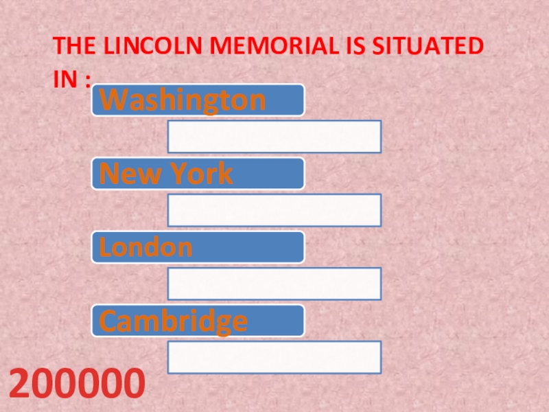 Слайд 18the Lincoln memorial is situated in :