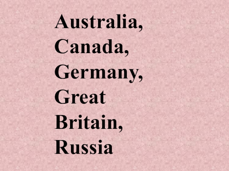 Слайд 3Australia, Canada, Germany, Great Britain, Russia