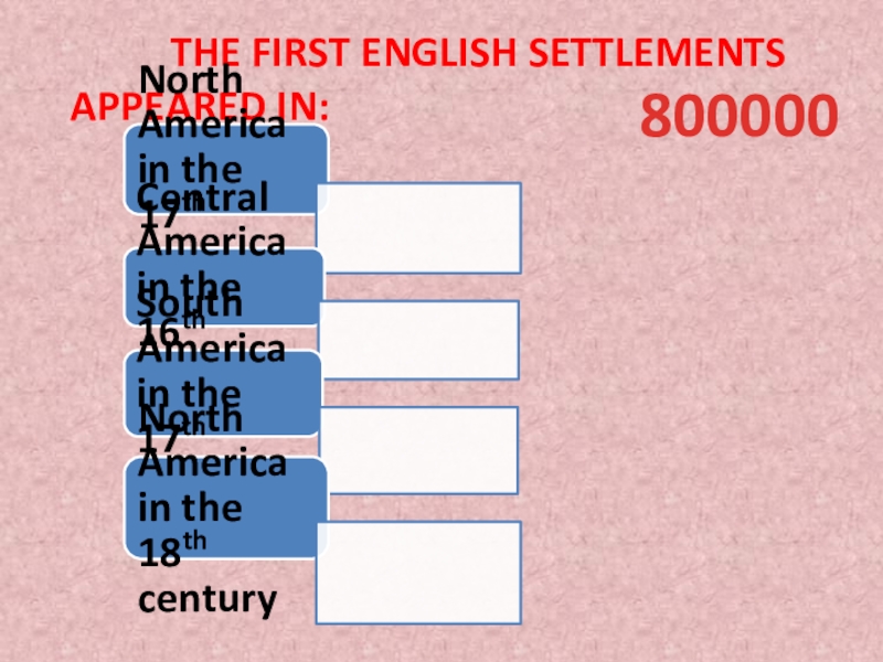 the first English settlements appeared in:800000