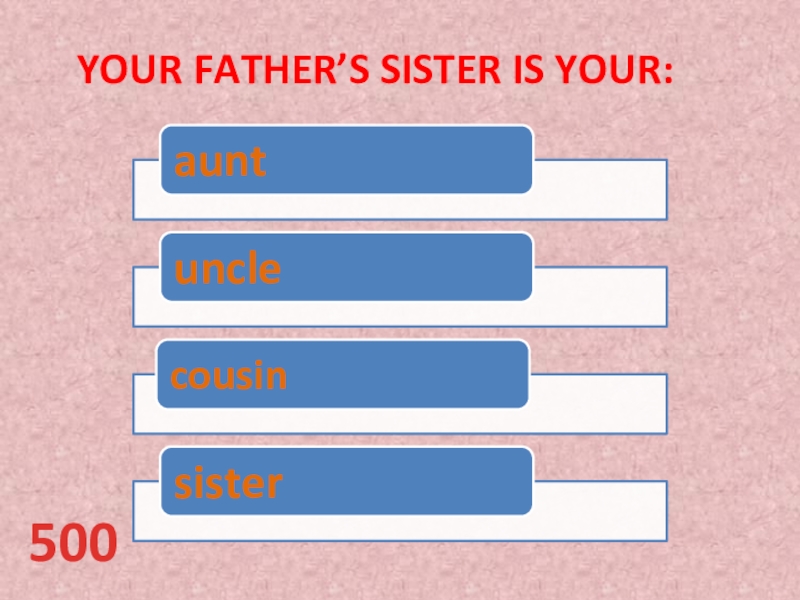 Слайд 10Your father’s sister is your:
