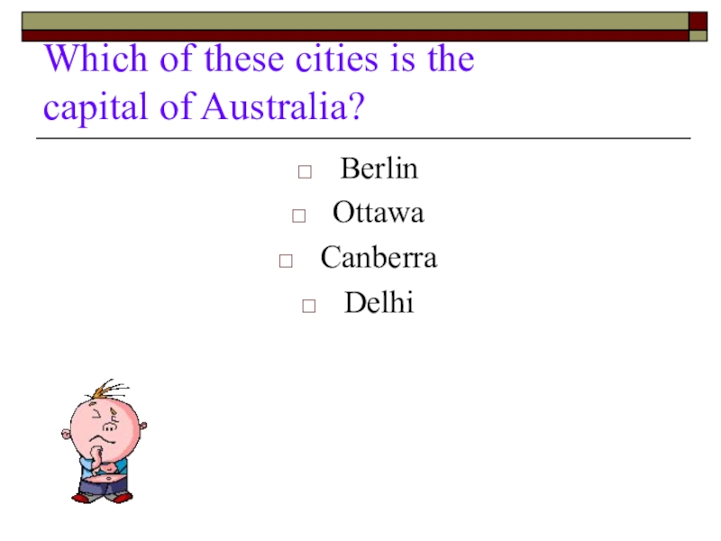 Which of these cities is the capital of Australia?BerlinOttawaCanberraDelhi