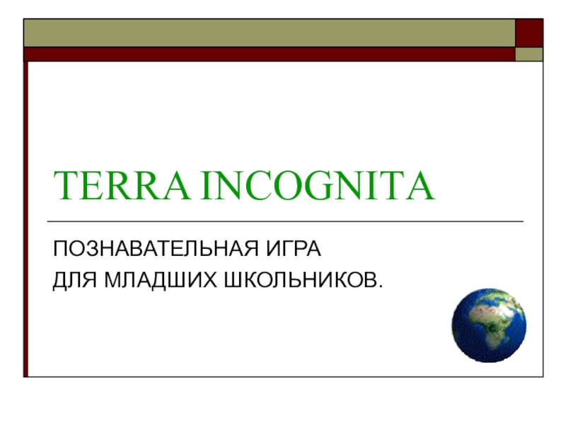 TERRA INCOGNITАПОЗНАВАТЕЛЬНАЯ ИГРАДЛЯ МЛАДШИХ ШКОЛЬНИКОВ.