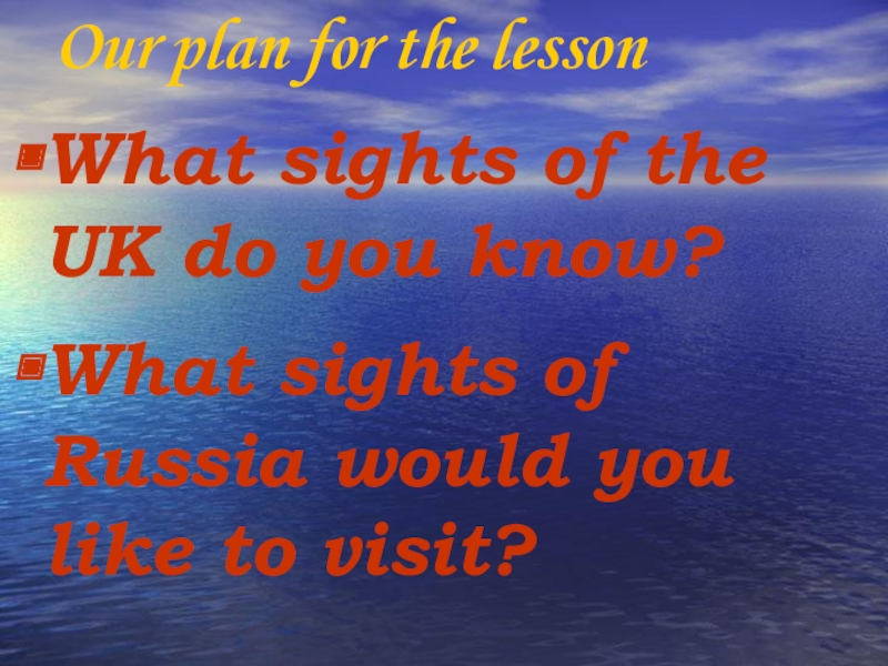 Our plan for the lessonWhat sights of the UK do you know?What sights of Russia would you