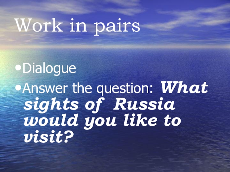 Work in pairsDialogue Answer the question: What sights of Russia would you like to visit?