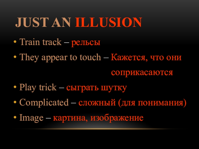 JUST AN ILLUSIONTrain track – рельсыThey appear to touch – Кажется, что они