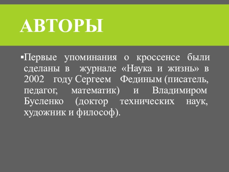 Это сайт презентаций, где можно хранить и обмениваться своими презентациями, докладами, проектами, шаблонами в формате PowerPoint с другими пользователями. Мы помогаем школьникам, студентам, учителям, преподавателям хранить и обмениваться учебными материалами.