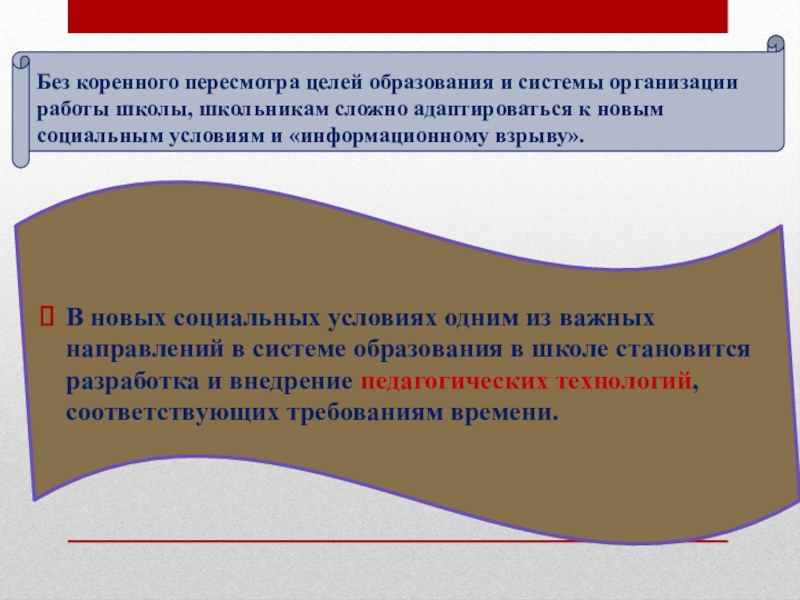 В новых социальных условиях одним из важных направлений в системе образования в школе становится разработка и внедрение педагогических технологий, соответствующих требованиям времени.