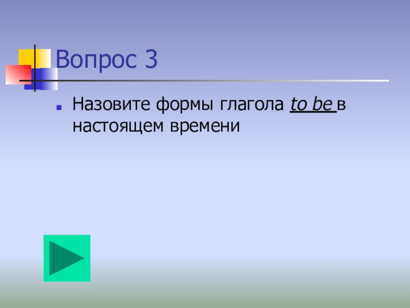 Вопрос 3Назовите формы глагола to be в настоящем времени