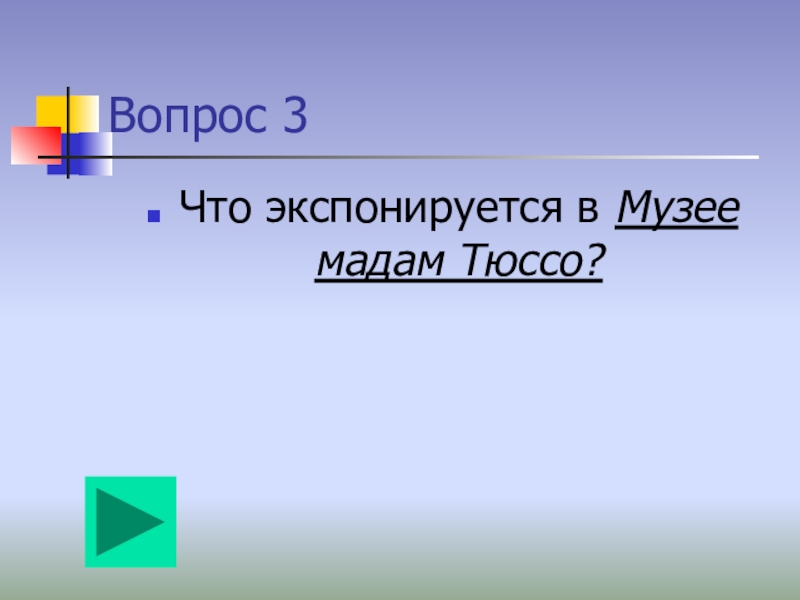 Вопрос 3Что экспонируется в Музее мадам Тюссо?