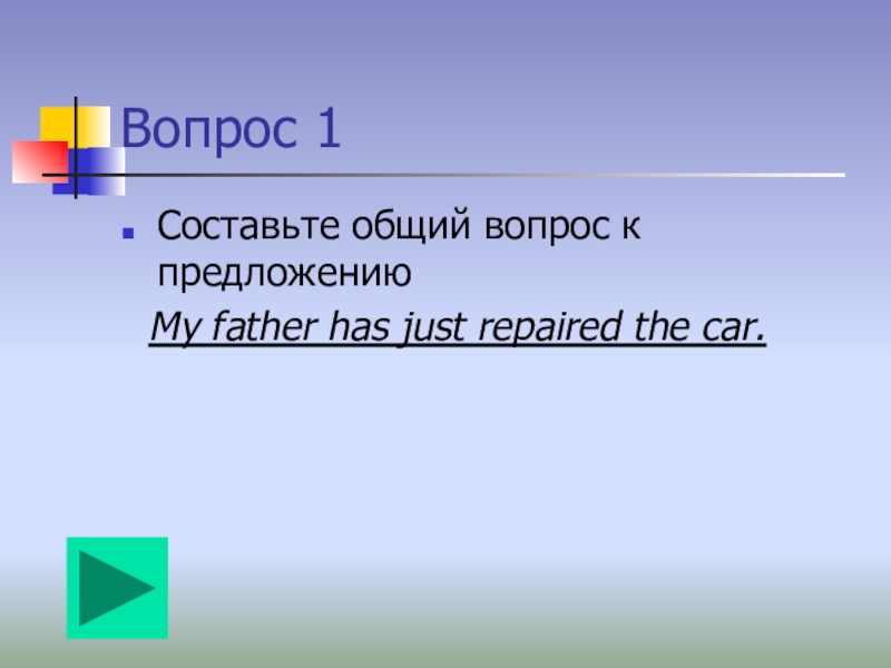 Вопрос 1Составьте общий вопрос к предложению  My father has just repaired the car.