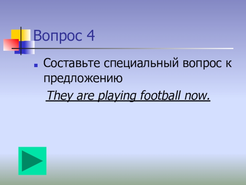 Вопрос 4 Составьте специальный вопрос к предложению  They are playing football now.