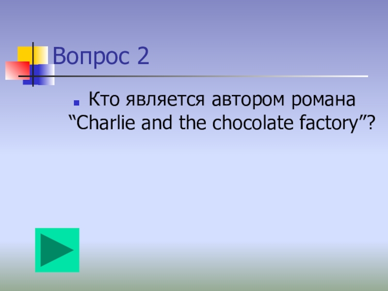 Вопрос 2Кто является автором романа “Charlie and the chocolate factory”?