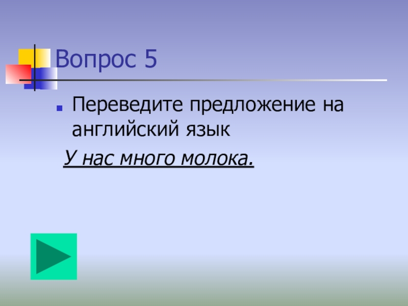Вопрос 5Переведите предложение на английский язык У нас много молока.