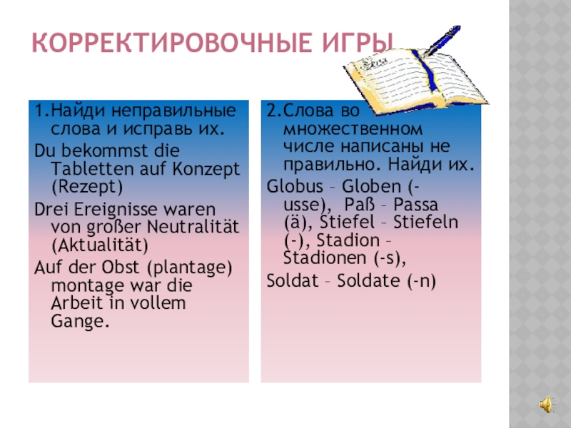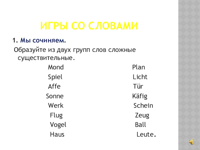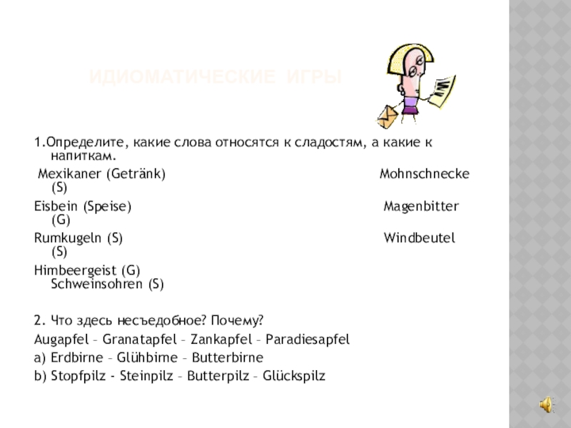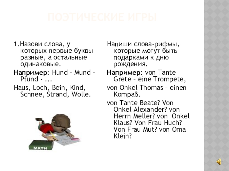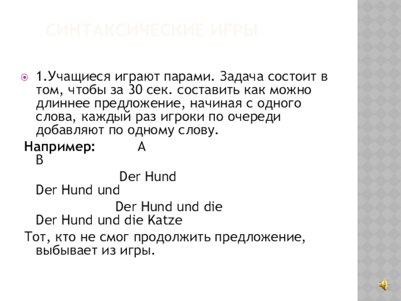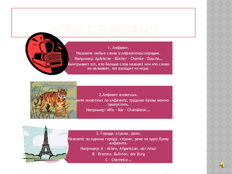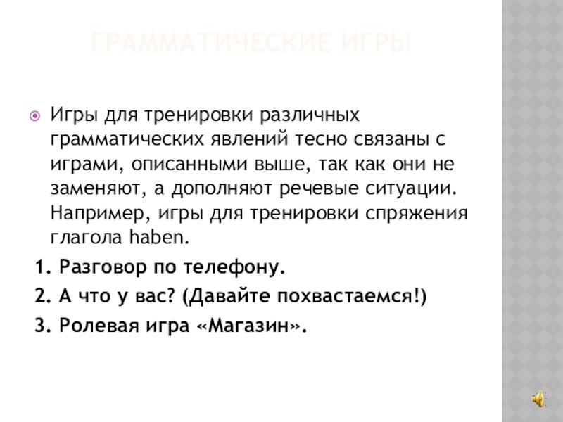 описанными выше, так как они не заменяют, а дополняют речевые ситуации. Например, игры для тренировки спряжения глагола haben.