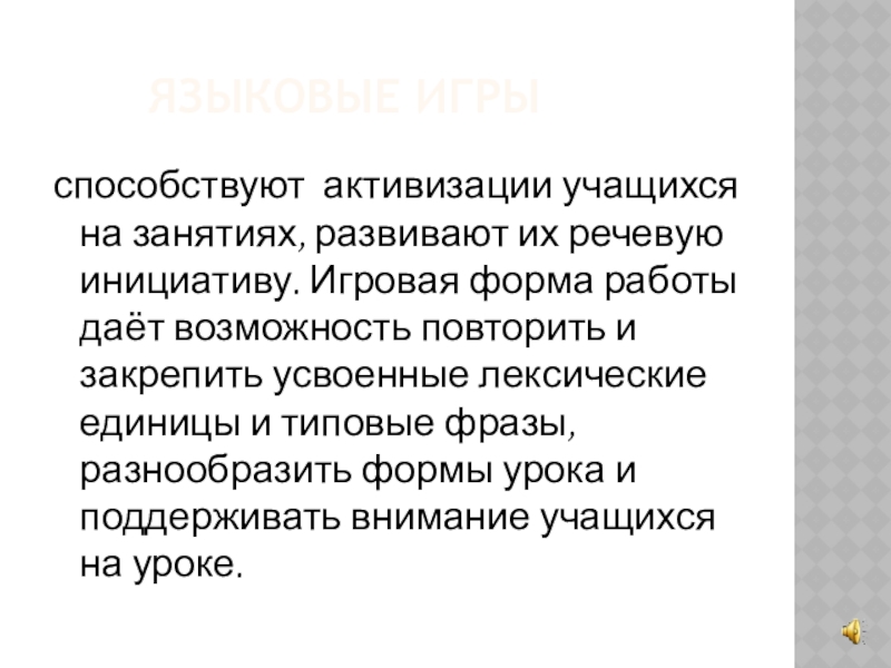 их речевую инициативу. Игровая форма работы даёт возможность повторить и закрепить усвоенные лексические единицы и типовые фразы, разнообразить формы урока и поддерживать внимание учащихся на уроке.