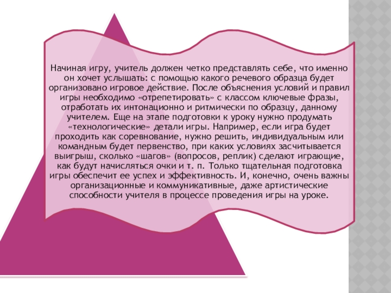 новую игру начинать учителю (роль ведущего), а затем эту роль передать хорошо подготовленному ученику;