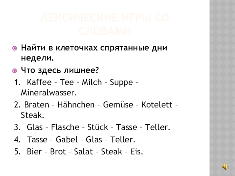использовать необходимые лексические единицы и выражения, которые помогут учителю провести игру на немецком языке.