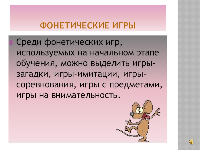 Среди фонетических игр, используемых на начальном этапе обучения, можно выделить