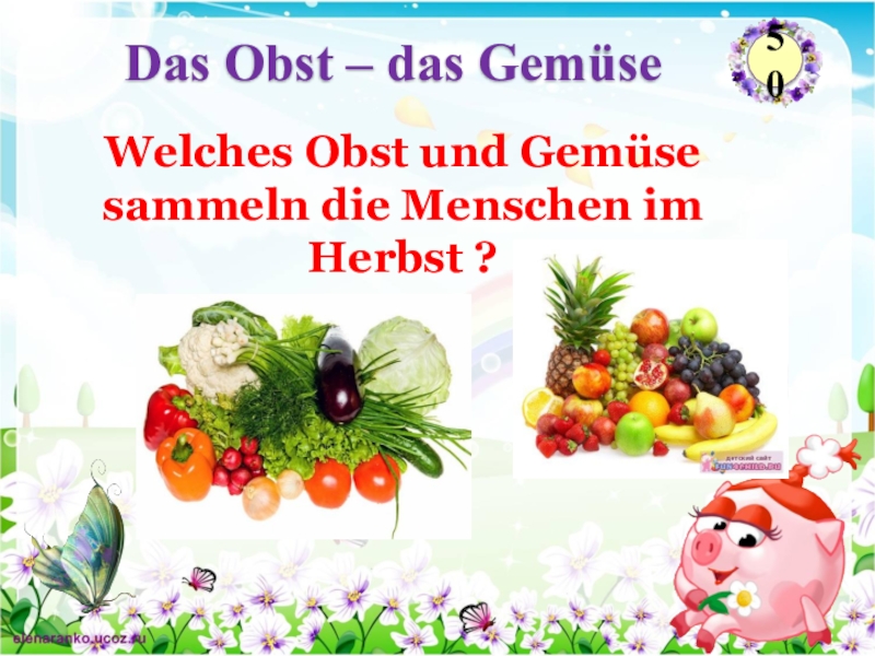 Осенью овощи и фрукты спелые .