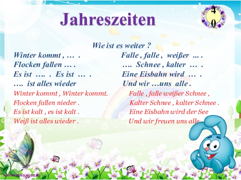 Winter kommt , … . Falle , falle , weißer ... .