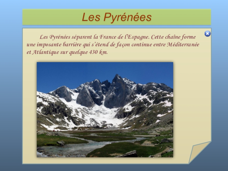 Слайд 55 Les Pyrénées séparent la France de l’Espagne. Cette chaîne forme