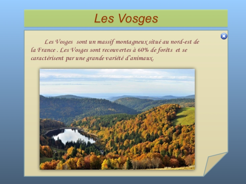 Слайд 51 Les Vosges sont un massif montagneux situé au nord-est de la France