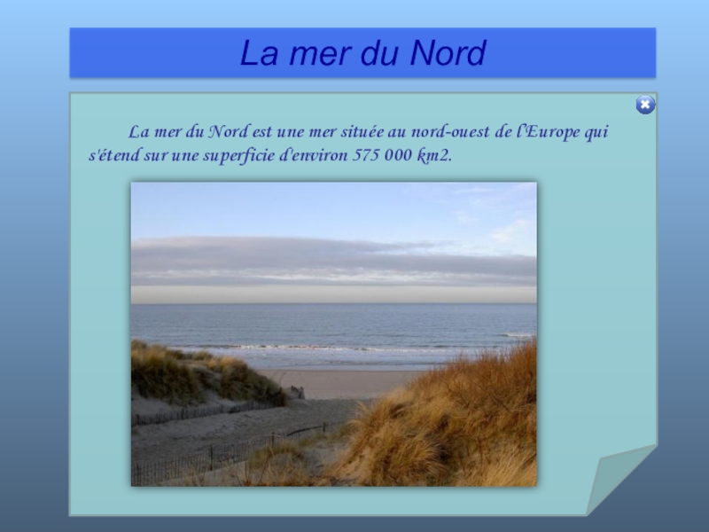 Слайд 42 La mer du Nord est une mer située au nord-ouest de l’Europe qui