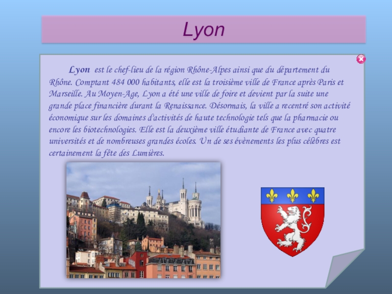 Слайд 71 Lyon est le chef-lieu de la région Rhône-Alpes ainsi que du