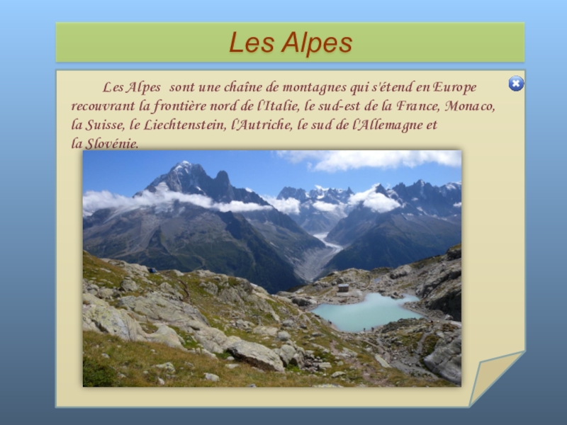Слайд 53 Les Alpes sont une chaîne de montagnes qui s'étend en Europe recouvrant la