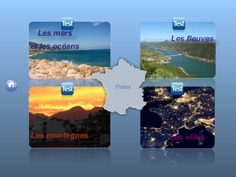 Страноведческий материал по темам : «Физическая география Франции» и «Французские города» со встроенным тестированием.