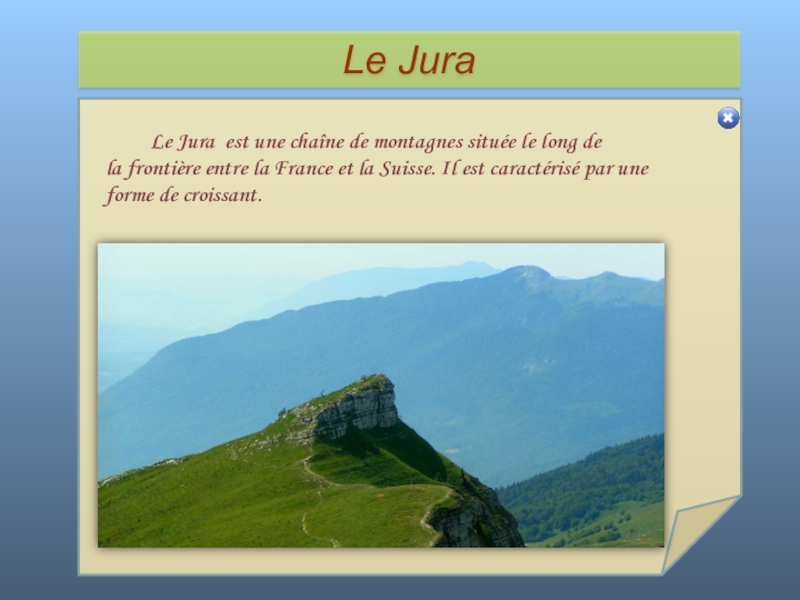 Слайд 52 Le Jura est une chaîne de montagnes située le long de