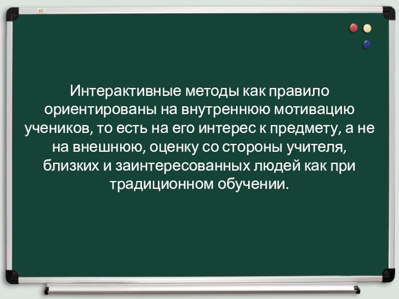 Слайд 25Интерактивные методы как правило ориентированы на внутреннюю мотивацию учеников, то есть