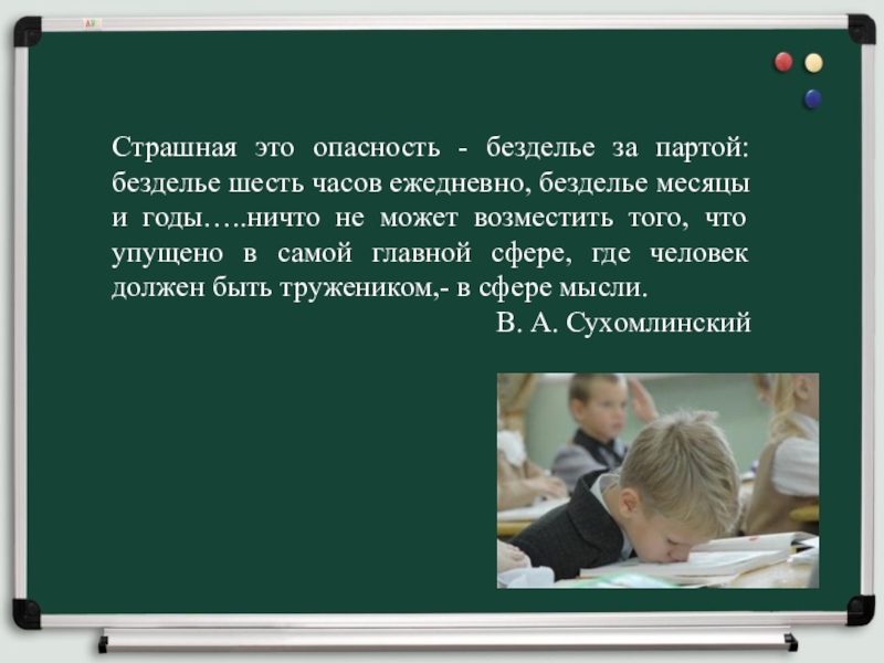 Слайд 5Страшная это опасность - безделье за партой: безделье шесть часов ежедневно,