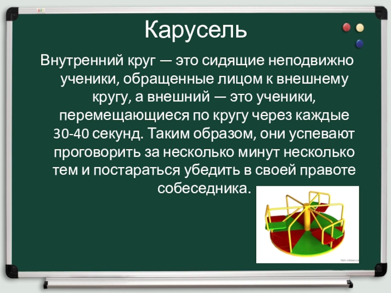 кругу, а внешний — это ученики, перемещающиеся по кругу через каждые 30-40 секунд. Таким образом, они успевают проговорить за несколько минут несколько тем и постараться убедить в своей правоте собеседника.