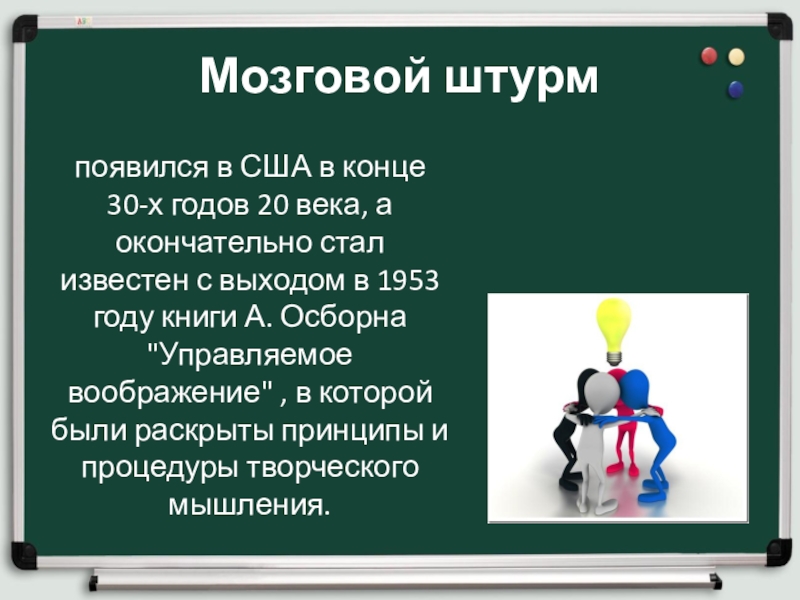 окончательно стал известен с выходом в 1953 году книги А. Осборна "Управляемое воображение" , в которой были раскрыты принципы и процедуры творческого мышления.