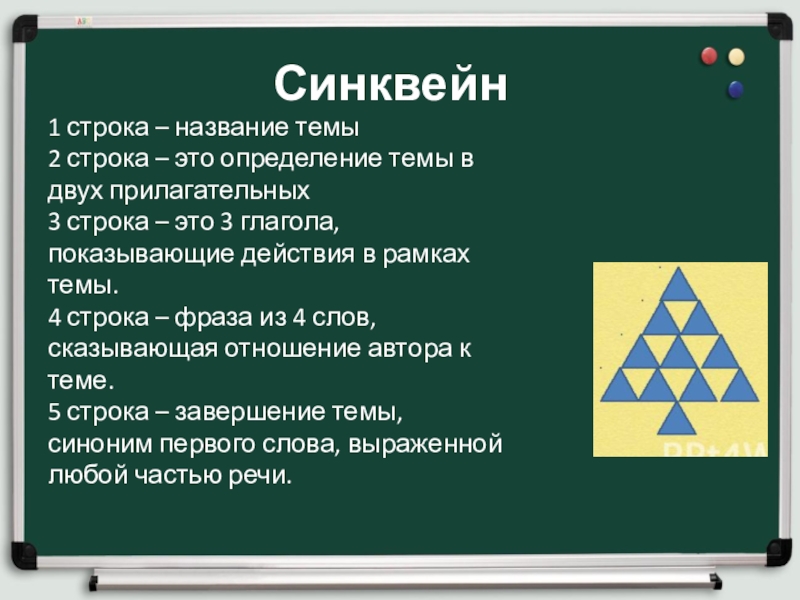 5 строка – завершение темы, синоним первого слова, выраженной любой частью речи.