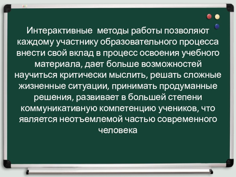 Слайд 26Интерактивные методы работы позволяют каждому участнику образовательного процесса внести свой вклад