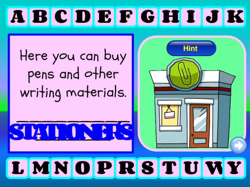 ABCDEFGHIJKLMNOPRSTUWYHere you can buy pens and other writing materials._______________STATIONRS‘E