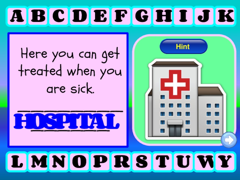 ABCDEFGHIJKLMNOPRSTUWYHere you can get treated when you are sick.______________POHSITAL