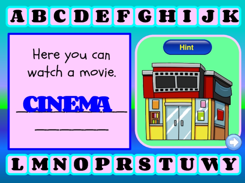 ABCDEFGHIJKLMNOPRSTUWYHere you can watch a movie._______________CINEMA
