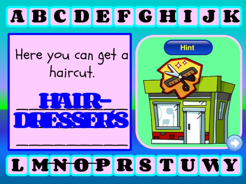 ABCDEFGHIJKLMNOPRSTUWYHere you can get a haircut.______________________________HAIR-DRESSER‘S