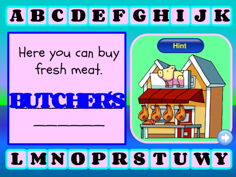 ABCDEFGHIJKLMNOPRSTUWYHere you can buy fresh meat._______________BUTCHERS‘