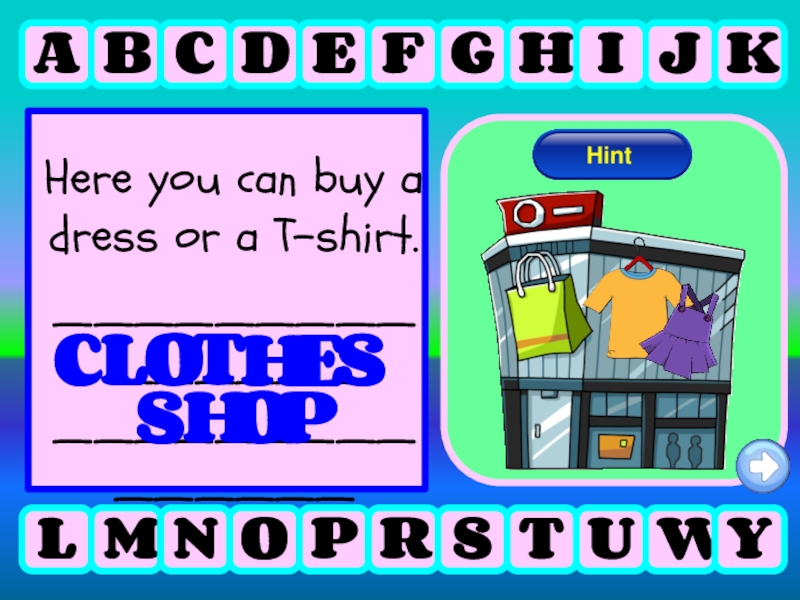ABCDEFGHIJKLMNOPRSTUWYHere you can buy a dress or a T-shirt.______________________________CLOTHESSHOP
