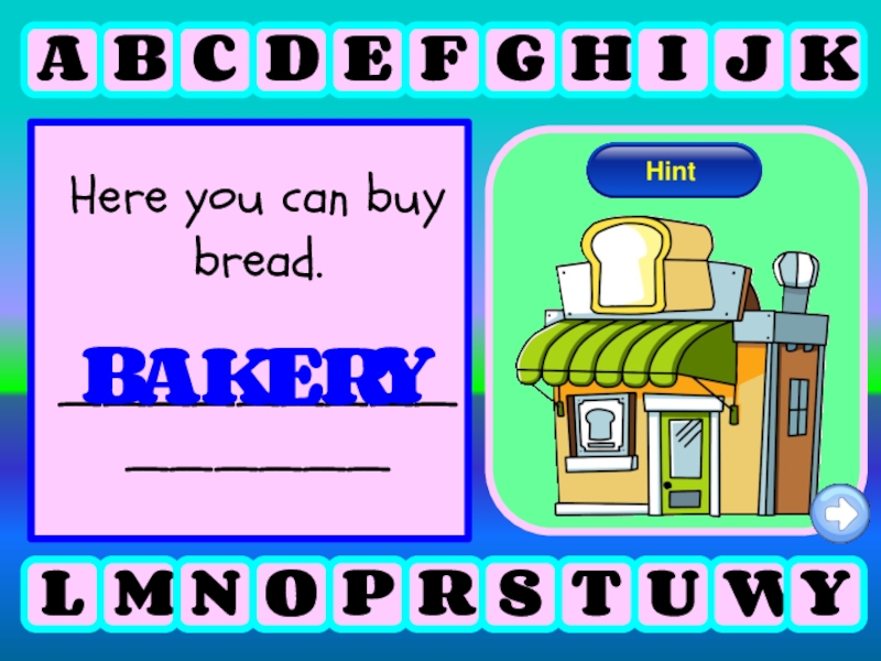 ABCDEFGHIJKLMNOPRSTUWYHere you can buy bread._______________BAKERY